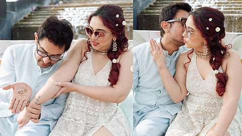 आमिर खान की अपनी बेटी को मेहंदी से गाल पर किस करते हुए तस्वीरें सोशल मीडिया पर वायरल हो गई हैं।