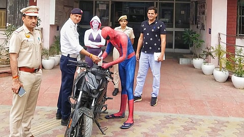 दिल्ली के द्वारका में बाइक पर स्पाइडरमैन और स्पाइडर वुमन के के कपडे पहनकर एक जोड़ी का वीडियो 9 लाख से ज्यादा बार देखा जा चुका है।